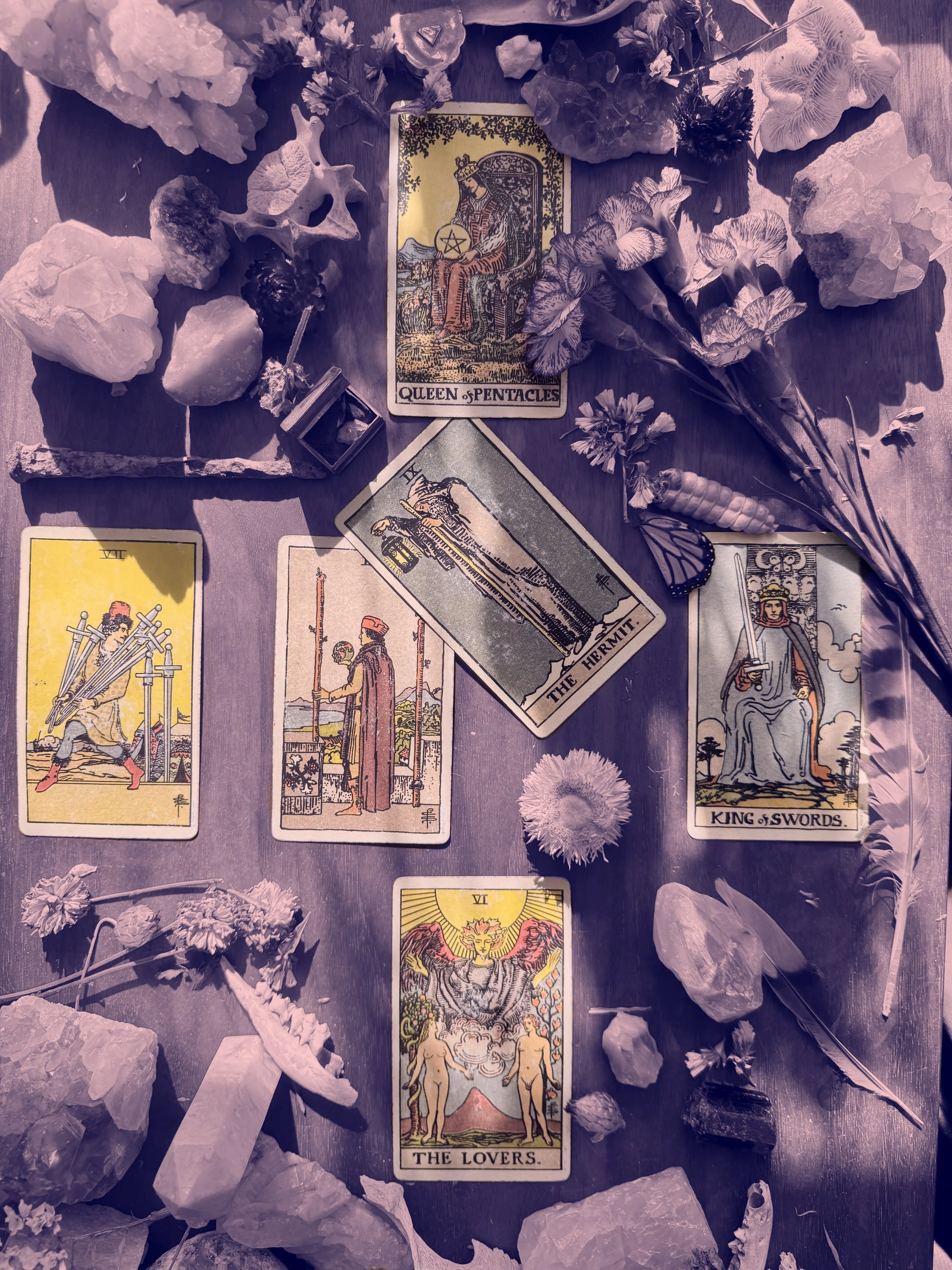 This takes a clarity of values and a willingness to unlearn all of the ways these systems have conditioned within us (King of Swords). It also takes the determination and devotion of the Hermit, the will to traverse the unknown and unfamiliar, with soulful purpose as our guide.